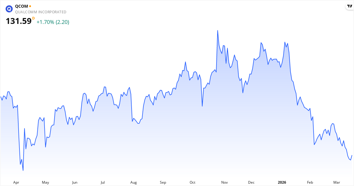 QUALCOMM Incorporated aktiekurs – Kursudvikling 2026. Opdateret 18. Mar 2026.