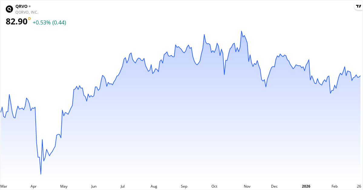 Qorvo aktiekurs – Kursudvikling 2026. Opdateret 01. Mar 2026.