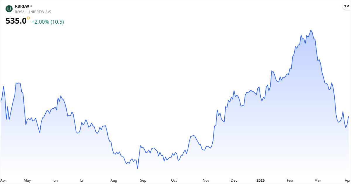 Royal Unibrew offentliggør næste regnskab den 29. april 2026. Aktien handles i øjeblikket til 535.00 Kr.. Med et P/E-tal på 17.1 vil markedet holde øje med om indtjeningen lever op til forventningerne.