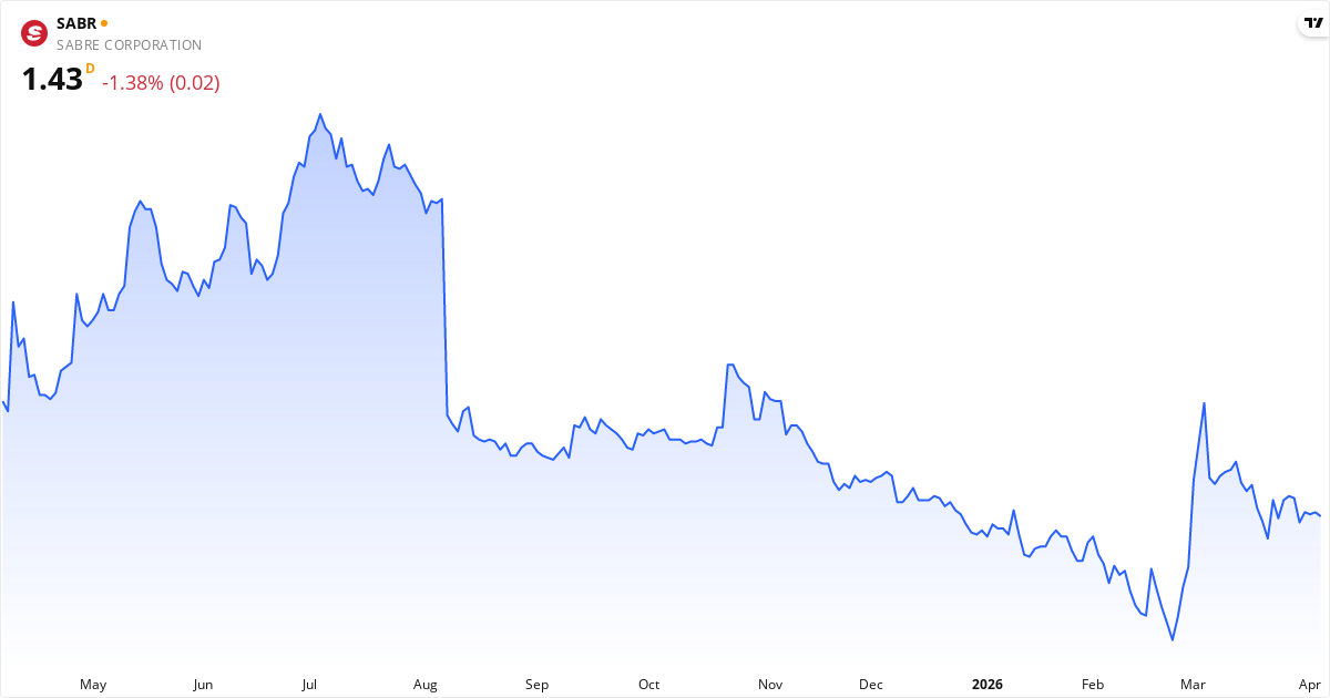 Sabre offentliggør næste regnskab den 05. maj 2026. Aktien handles i øjeblikket til 1.47 $.