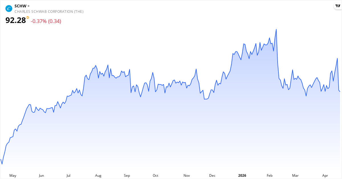 The Charles Schw aktiekurs – Kursudvikling 2026. Opdateret 20. Apr 2026.