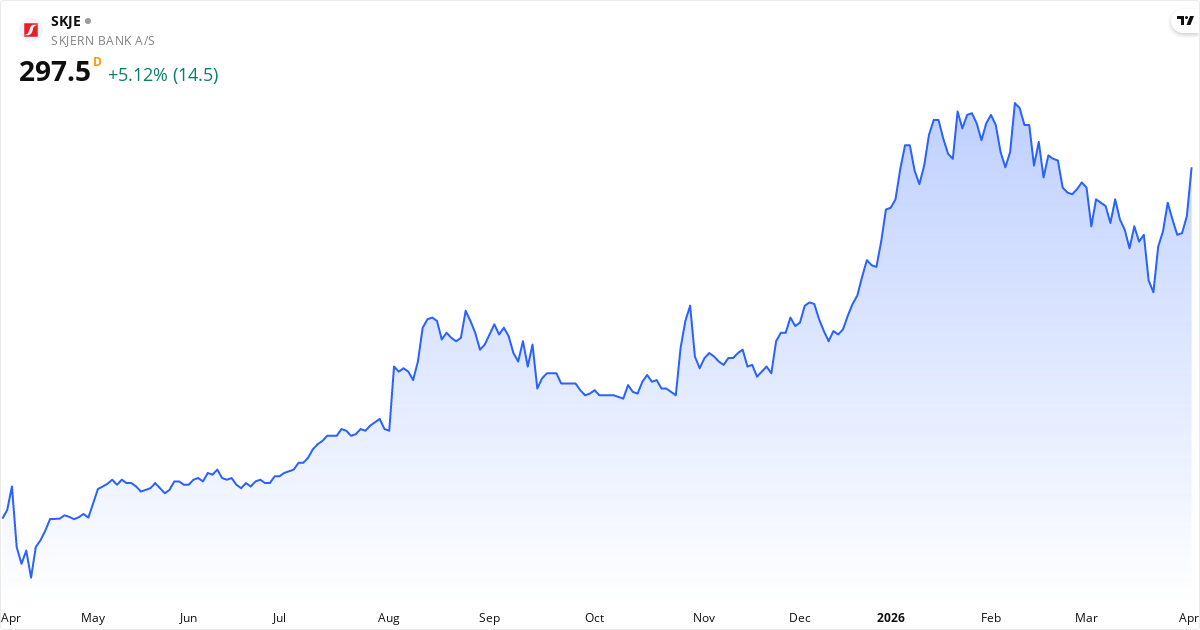 Skjern Bank's næste regnskab bliver offentliggjort d. 6. maj 2026. Dette regnskab dækker første kvartal (Q1) og sluttede d. 31. marts 2026.Teknisk analyse af Skjern Bank 2026 – Signal: Køb