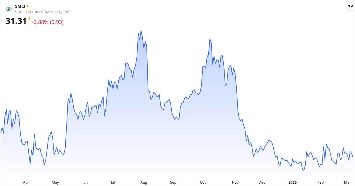 Super Micro Computer aktiekurs – Kursudvikling 2026. Opdateret 10. Mar 2026.