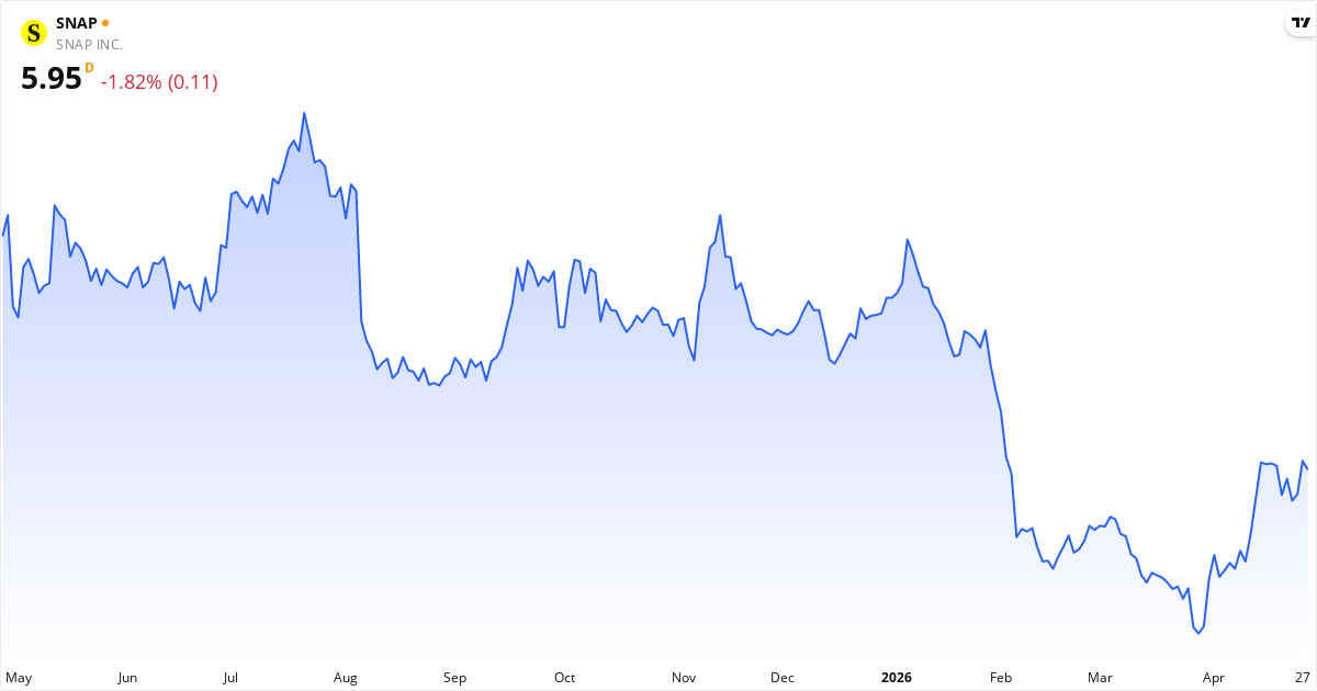 Snap offentliggør næste regnskab den 06. maj 2026. Aktien handles i øjeblikket til 5.98 $.