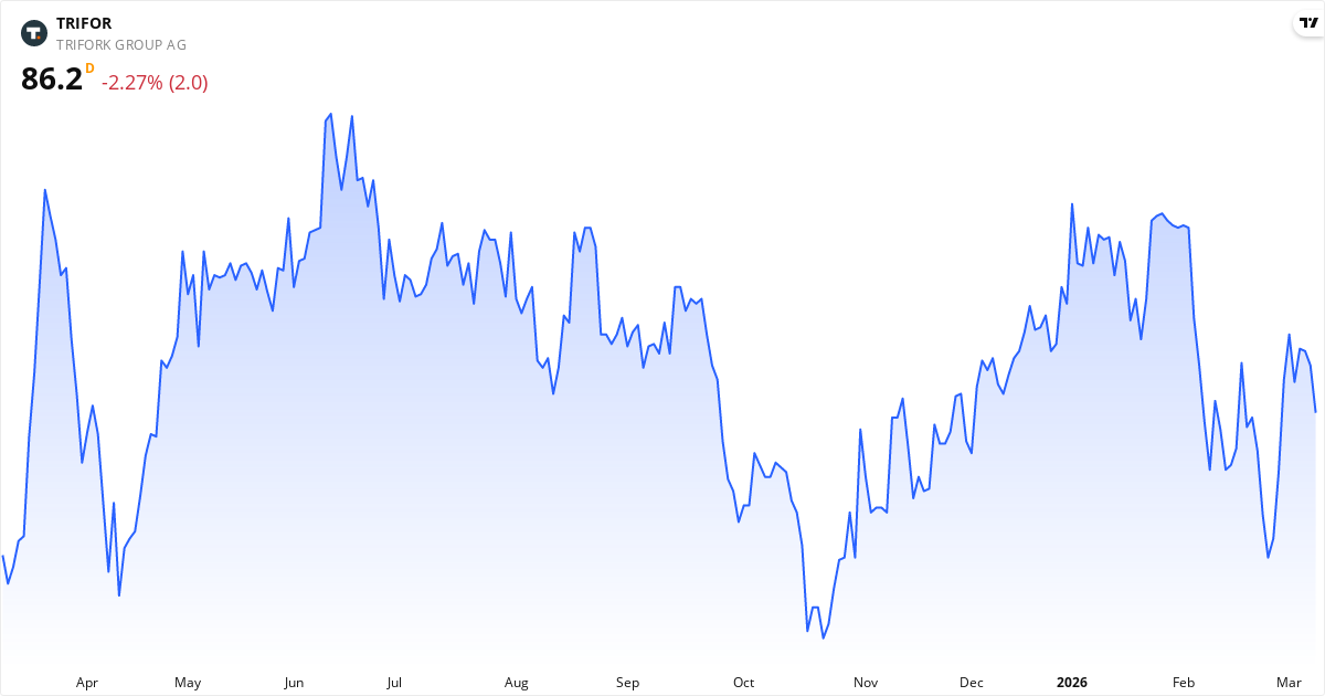 Trifork Holding aktiekurs – Kursudvikling 2026. Opdateret 09. Mar 2026.