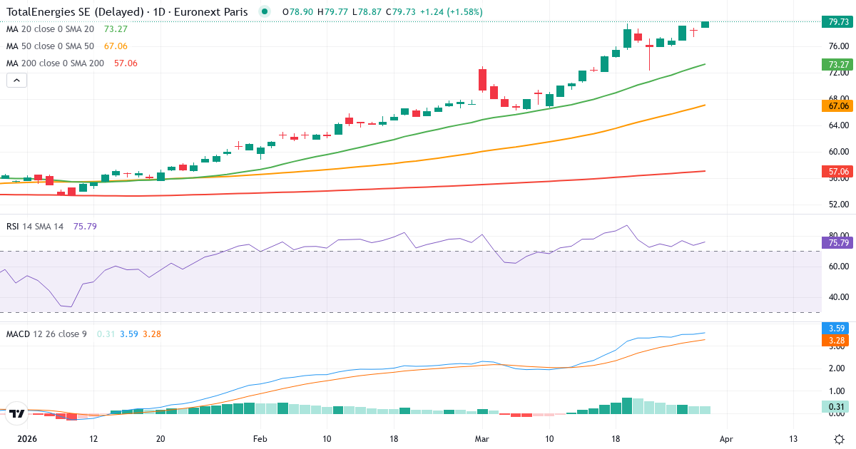 TotalEnergies's næste regnskab bliver offentliggjort d. 29. april 2026. Dette regnskab dækker første kvartal (Q1) og sluttede d. 31. marts 2026.Teknisk analyse af TotalEnergies 2026 – Signal: Stærkt Køb