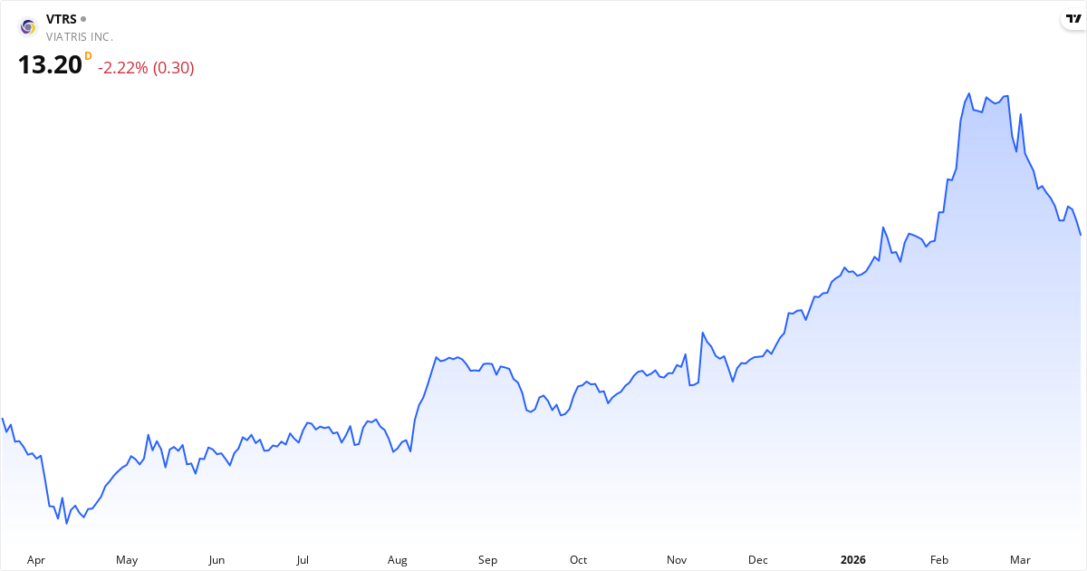 Viatris aktiekurs – Kursudvikling 2026. Opdateret 22. Mar 2026.