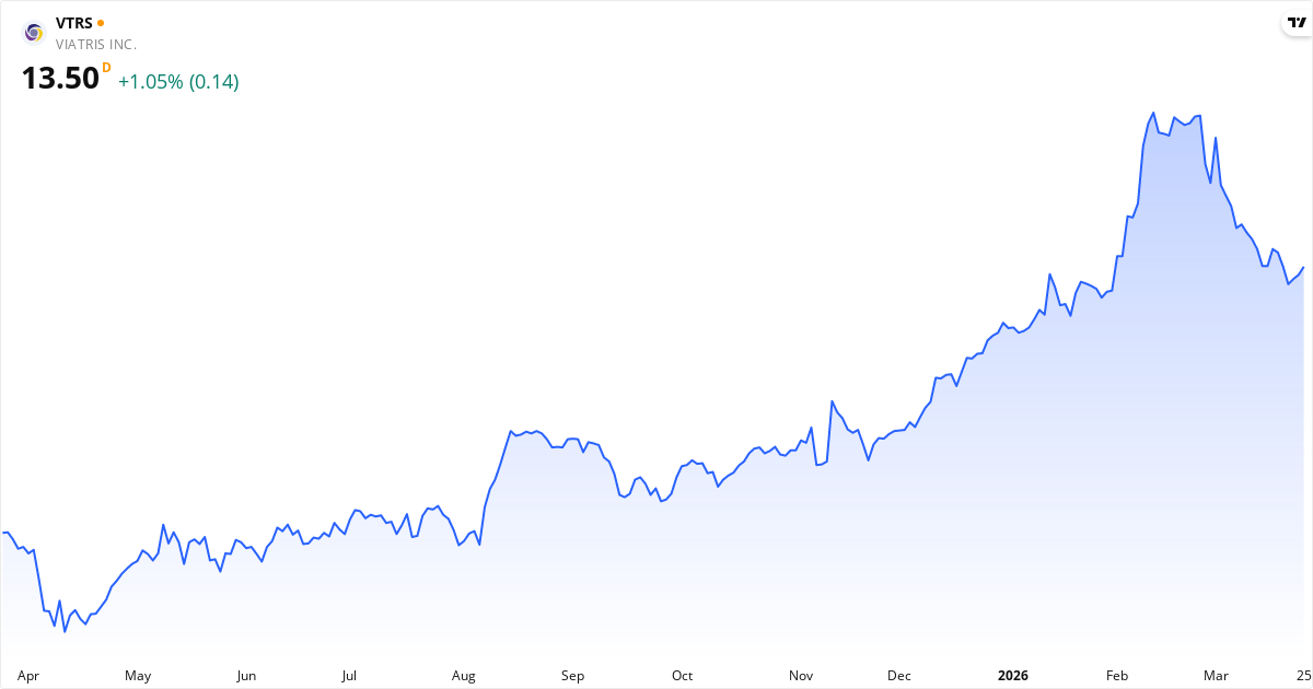 Viatris aktiekurs – Kursudvikling 2026. Opdateret 26. Mar 2026.