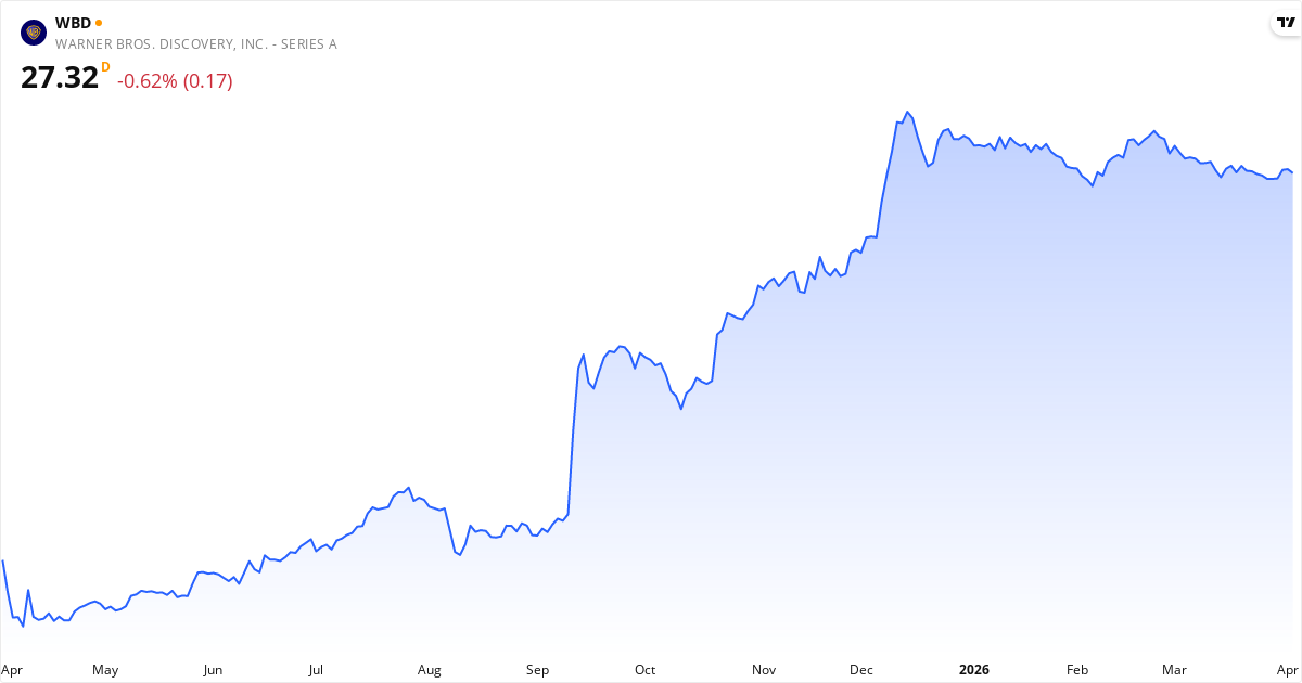 Warner Bros. Discovery offentliggør næste regnskab den 07. maj 2026. Aktien handles i øjeblikket til 27.32 $. Med et P/E-tal på 94.2 vil markedet holde øje med om indtjeningen lever op til forventningerne.